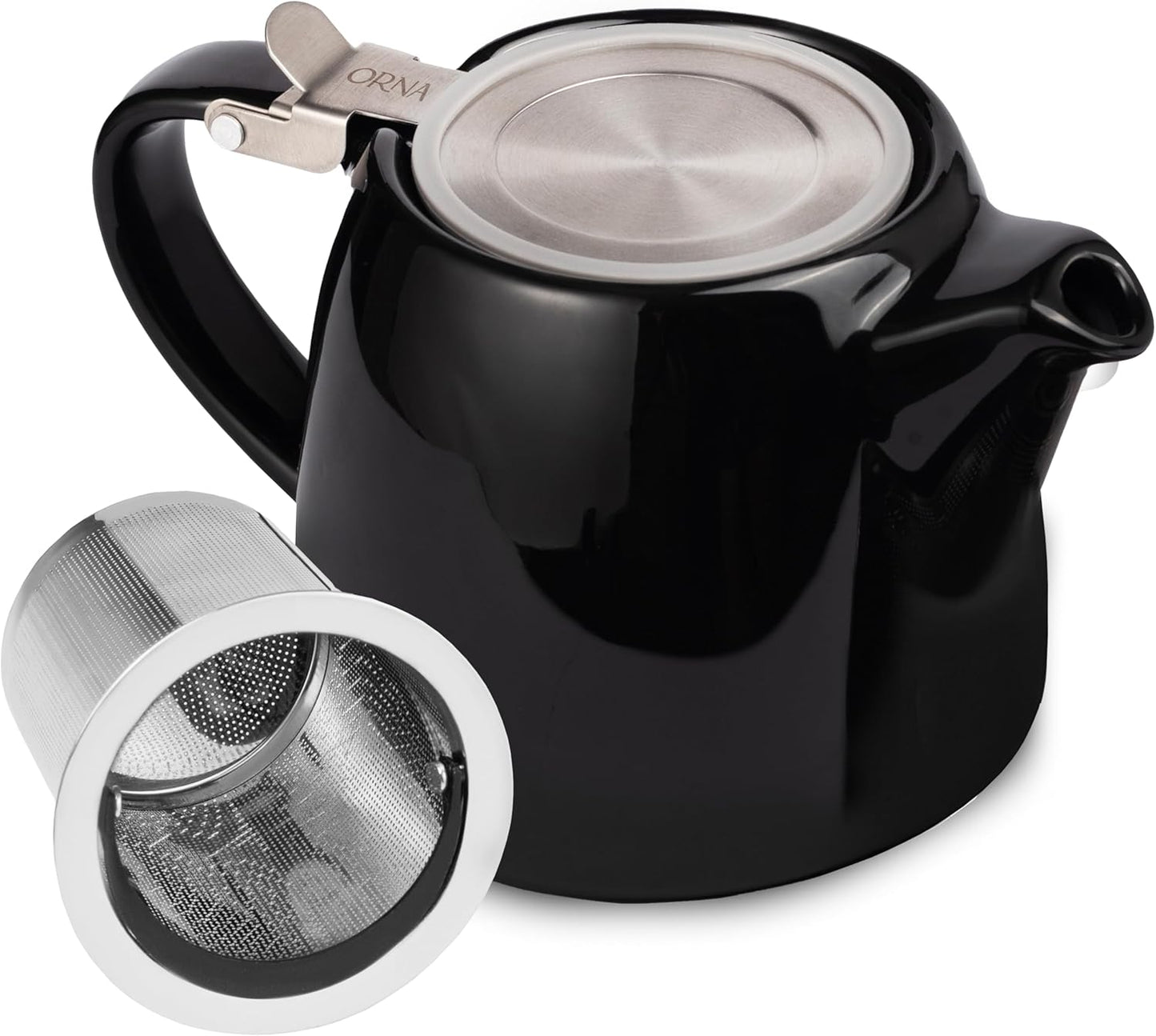 ORNA Keramik-Teekanne mit Siebkorb und Edelstahldeckel in Schwarz, 18,6 oz (550 ml)